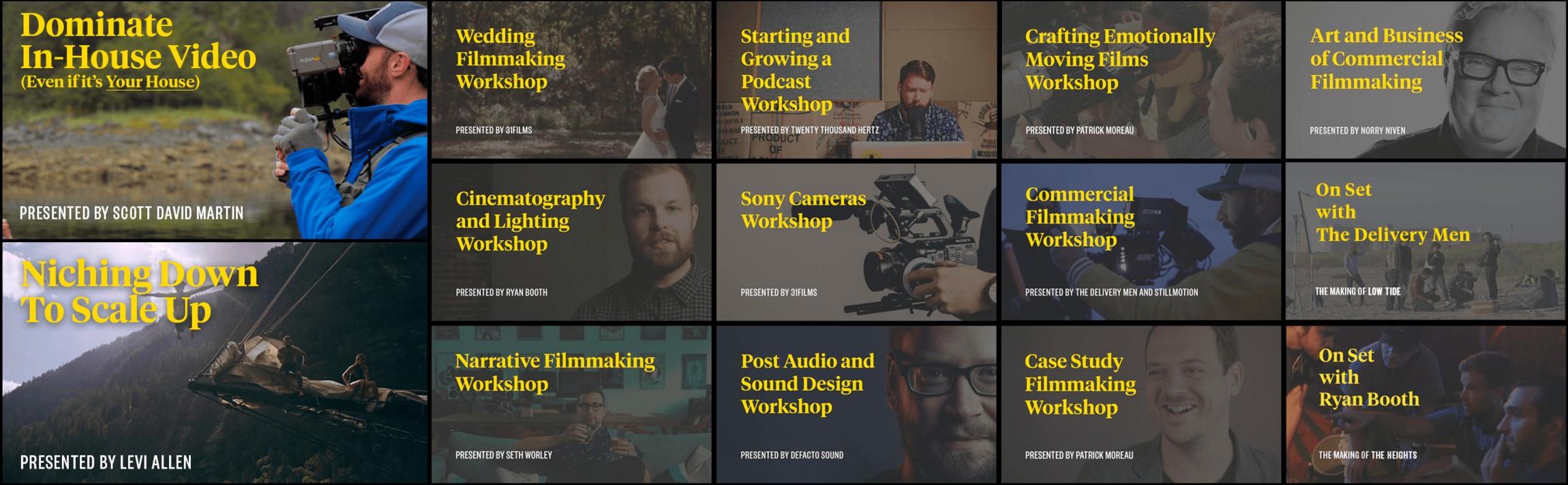 Whether you're an independent filmmaker, an editor for a major brand or agency, or run a full-blown film production company, you'll find filmmaking gold and years of experience and wisdom in these workshops.